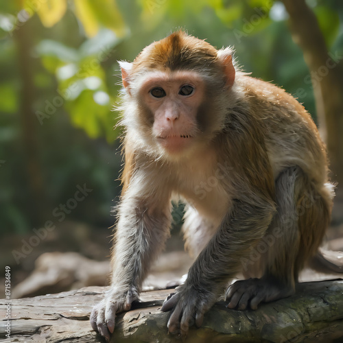 © MAJIB, Fototapeta premium a monkey that is sitting on a log in the woods