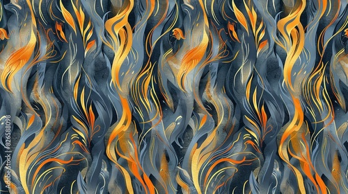 Fototapeta premium A monochrome canvas showcases vibrant orange-blue swirls against black-white...