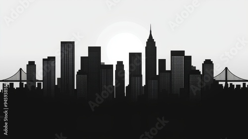Fototapeta premium A monochrome cityscape silhouette with skyscrapers and bridges, ideal for an...