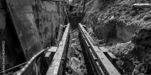 © Fotograf, Naklejka premium A monochrome image of a construction site. Suitable for industrial concepts