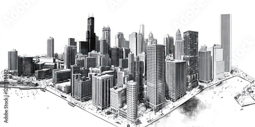 © LyceeChee, Obraz premium A Monochrome Sketch of Chicagos Impressive Skyline
