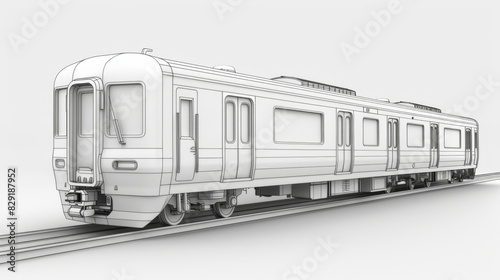 Naklejka premium A monochrome technical blueprint of a modern passenger train, highlighting...
