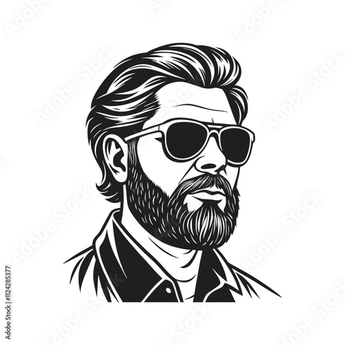 Fototapeta premium A monochrome vector illustration of a bearded man wearing sunglasses with a...