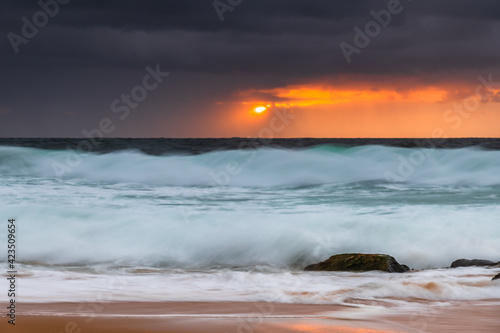 © Merrillie, Fototapeta premium A moody overcast sunrise seascape