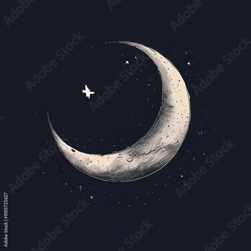 © kholik, Fototapeta premium a moon and star are drawn on a black background.