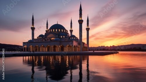 Fototapeta premium A mosque where the sun is reflected in the lake
