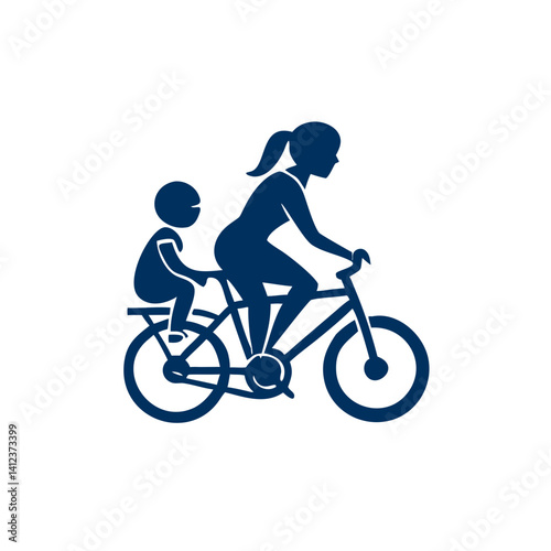 Fototapeta premium A mother and child enjoy a bike ride a simple blue silhouette against a dark background symbolizing family bonding and