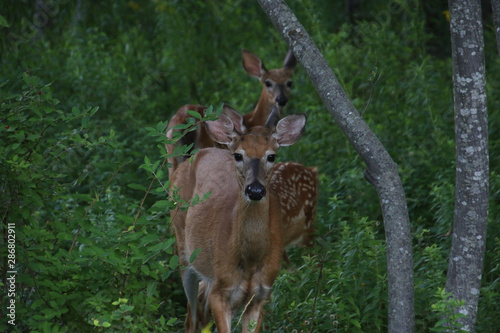 © David, Fototapeta premium A mother deer with two fawns
