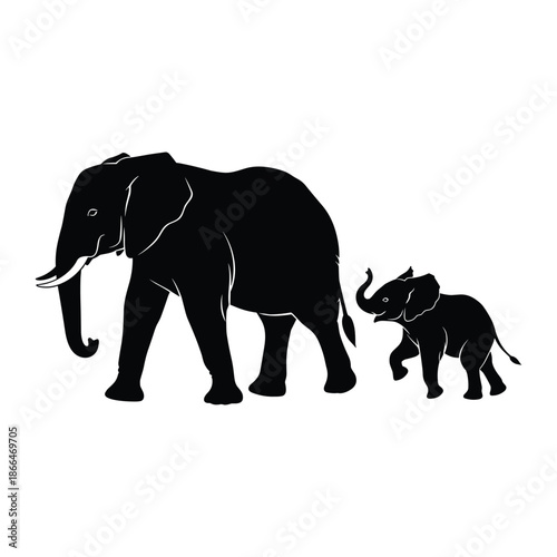 Obraz premium A mother elephant and her calf walking together in silhouette