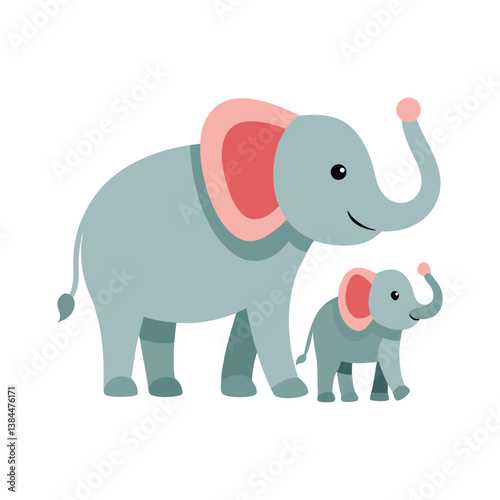 © hafsa01, Naklejka premium A mother elephant with her baby on white background
