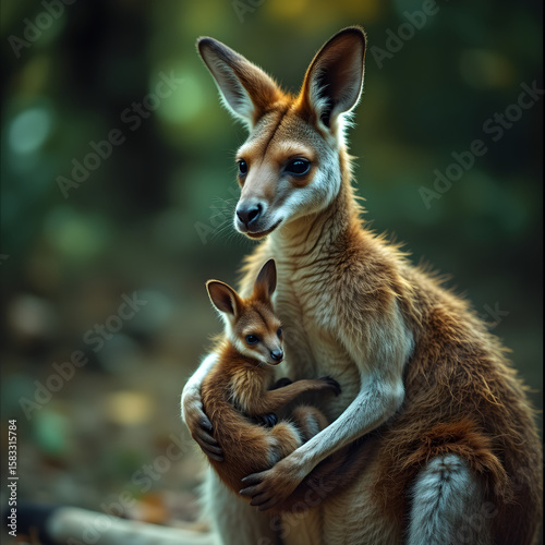 © JELENA, Fototapeta premium A mother kangaroo is holding her baby kangaroo
