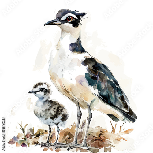 Obraz premium A Mother Lapwing With Her Kid, watercolor vector, high quality, isolated on a...