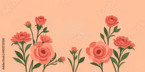 © Habibur Rahaman, Naklejka premium A mother's day themed background with pink flowers and a light peach colored background