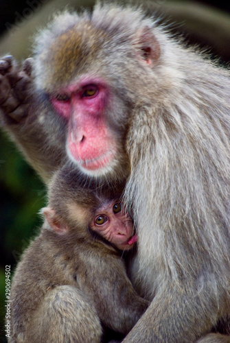 Naklejka premium A mother's love being displayed by Japanese macaques in Arashiyama hills in...