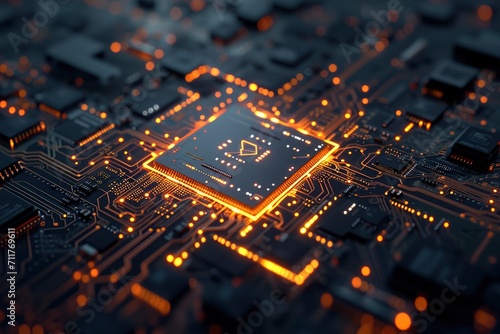 Obraz premium a motherboard CPU processor microchip initiates the digitalization of data,...