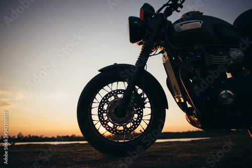 © Tanaban, Naklejka premium A motorcycle on the road with sunset light background