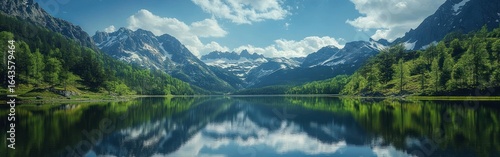© anang, Fototapeta premium A Mountain Lake Reflecting a Dramatic Mountain Range and a Cloudy Sky