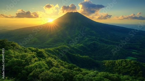 © Linus, Fototapeta premium A mountain range with a bright sun shining on it