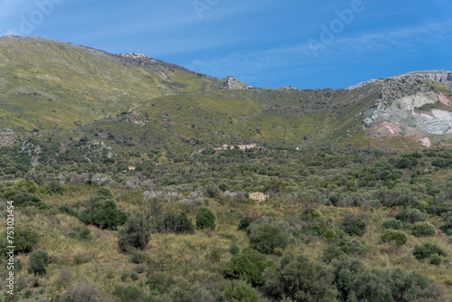 Naklejka premium A mountain range with a lush green hillside