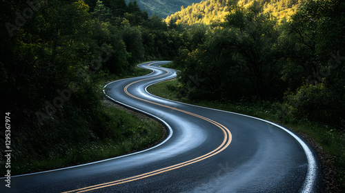 © PicParm, Fototapeta premium A mountain road passing through a forest with winding curves
