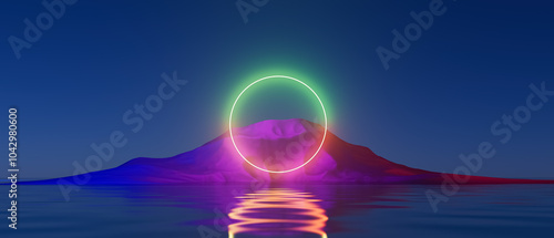 © yurakrasil, Obraz premium A mountain with a glowing circle in the middle of it