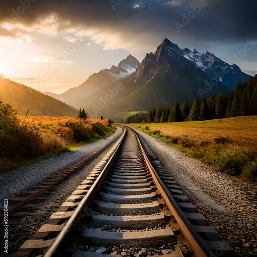 © Julian, Fototapeta premium a mountain with a railway track and a forest