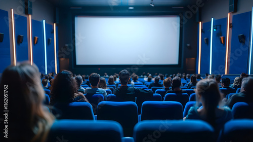 © Badisaba, Obraz premium A movie theater showcases a large screen with people