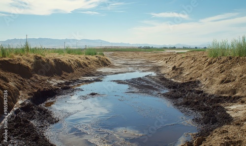 Fototapeta premium A muddy puddle in a dirt path.