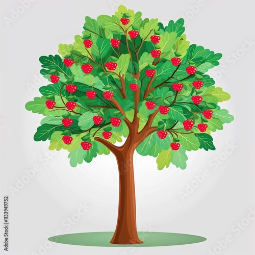 Fototapeta premium A mulberry tree cartoon illustration on plain white background