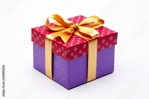 Fototapeta premium A multi-colored gift box wrapped with ribbon, isolated on a solid white background