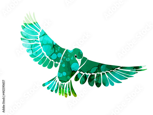 © Мария Неноглядова, Naklejka premium A multi-colored green flying decorative bird. Vector illustration