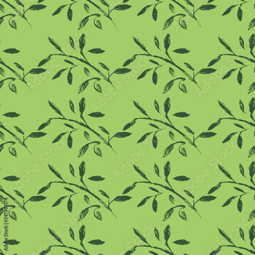 Obraz premium A multi-colored seamless pattern made by a brush. A hand-drawn pattern of leaves and flowers. Simple nature style. Vector eps illustration.