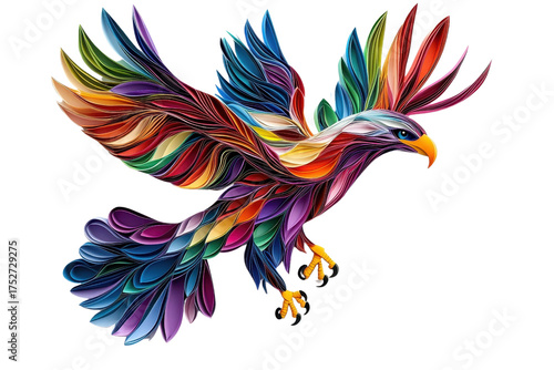 Fototapeta premium A multicolored paper art eagle, isolate on white background, crafted with intricate layers of colored paper. PNG