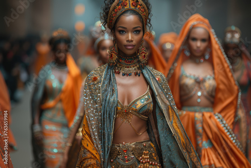Fototapeta premium A multicultural fashion show featuring designers who draw inspiration from...