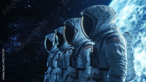 Fototapeta premium A multicultural team of astronauts from Asia, Africa, and Latin America...