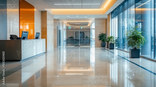 Obraz premium A multifunctional complex lobby with elegant decor, a modern reception...