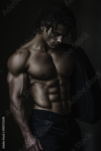 Fototapeta premium A muscular man demonstrates strength and poise with an artistic touch.