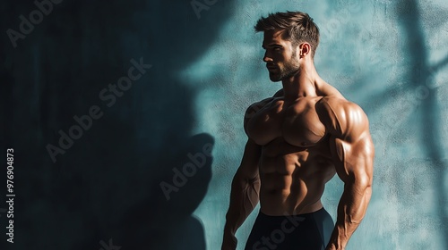 © Galib, Fototapeta premium A muscular man with a beard is posing for the camera.