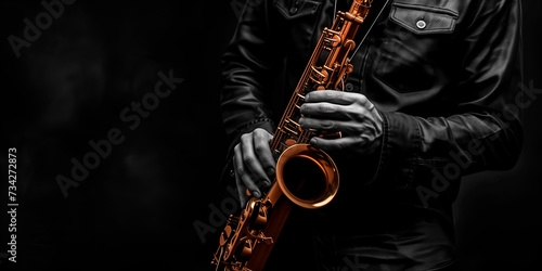 Naklejka premium A musician's hands gracefully hold a saxophone