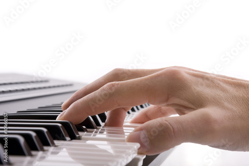 Fototapeta premium A musicians hand on a keyboard isolated on white