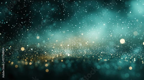 © Teerasak, Obraz premium A muted green background featuring scattered tiny dots forming a soft flat texture and a clean middle area