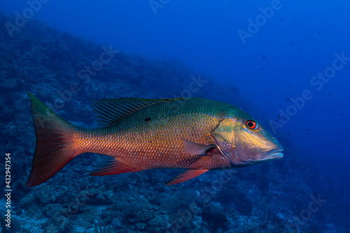 © drew, Fototapeta premium A mutton snapper on a coral reef in the Cayman Islands