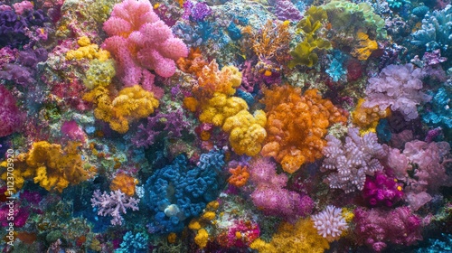 Naklejka premium A myriad of hard and soft corals at Vatu-I-Ra Conservation Park on Viti Levu,...