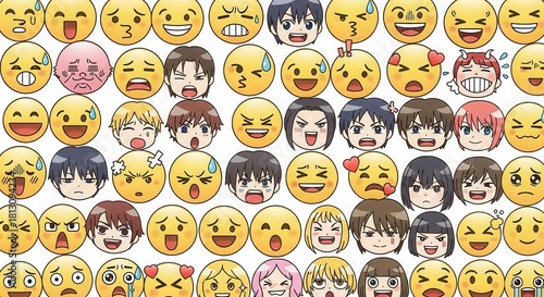 Obraz premium A myriad of human and symbolic facial expressions captures the multifaceted...