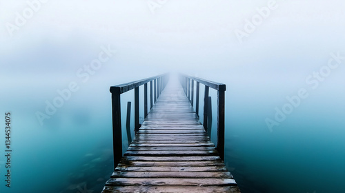 © Laura, Fototapeta premium A mysterious footbridge enveloped in mist