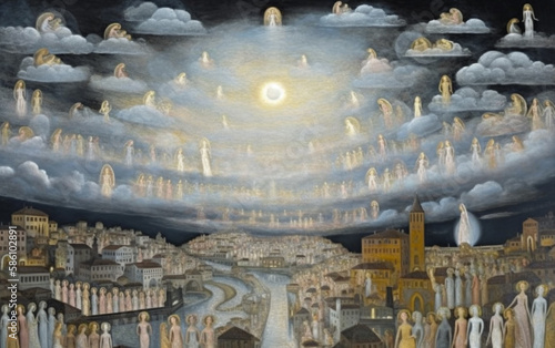 Obraz premium A mysterious iconish depiction of heaven and the afterlife, Generative AI