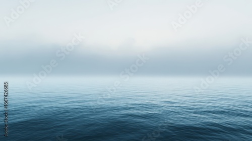 © Kelumlakmal, Obraz premium A mysterious ocean scene with rolling fog drifting over the water, on blurred background