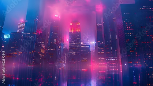 Fototapeta premium A mysterious urban setting with a lot of high-rise buildings, at night,...