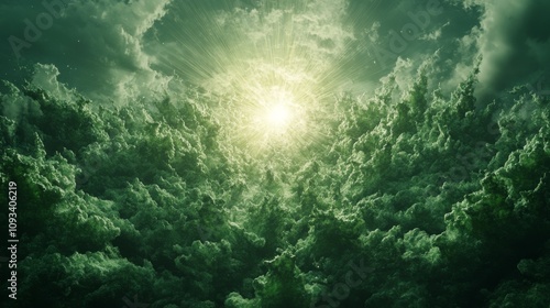 Fototapeta premium A Mystical Forest Canopy Illuminated by Divine Light