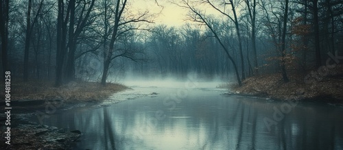 Fototapeta premium A mystical forest river shrouded in mist.